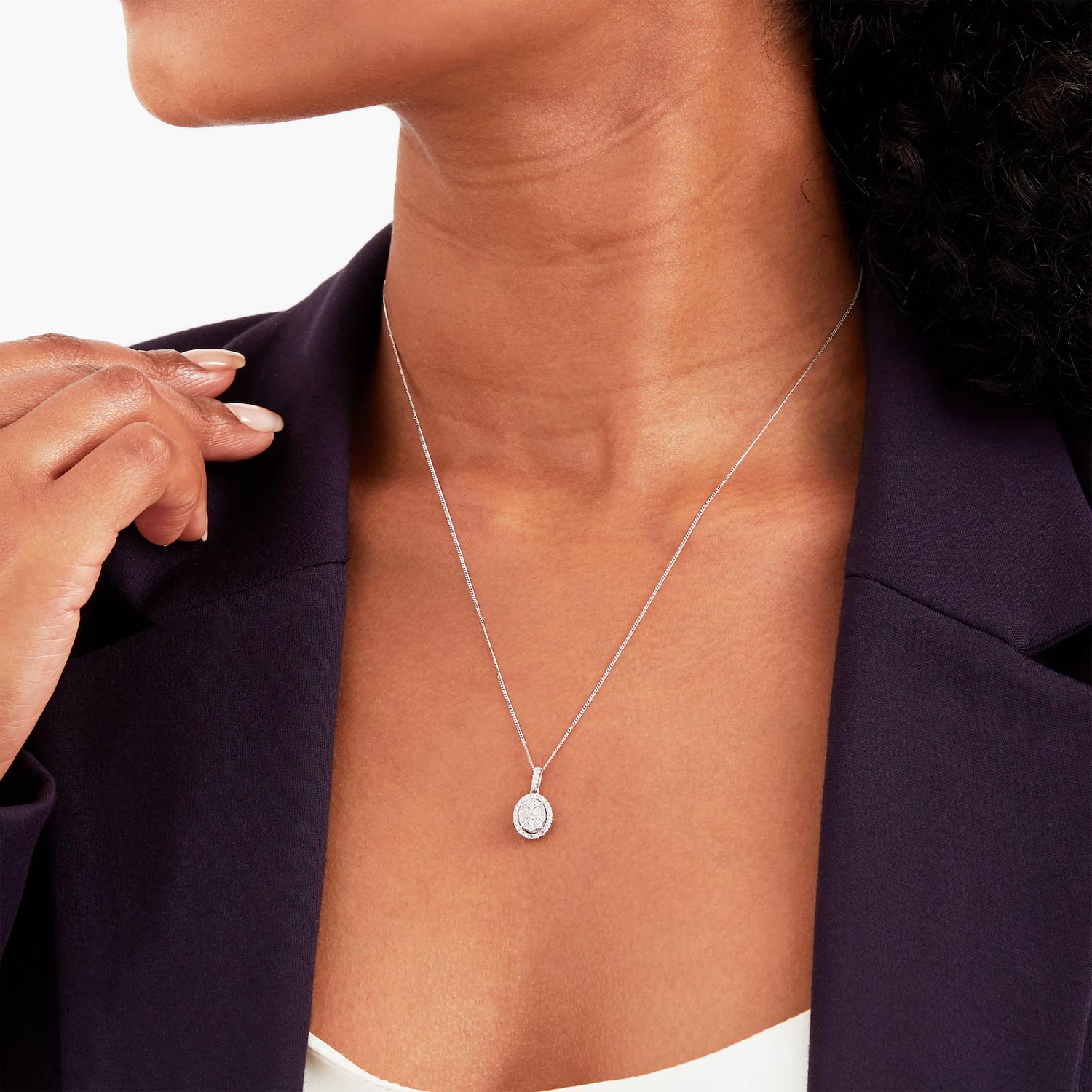 9ct White Gold 0.25ct Diamond Oval Cluster Pendant